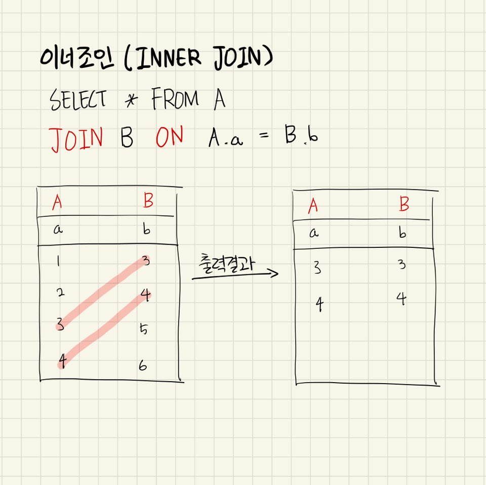 간단하게 이야기하면 A테이블의 값을 출력할 때 A를 참조하고 있는 B테이블의 데이터를 같이 출력하길 원한다면 이너 조인을 사용하면 된다 (교집합)