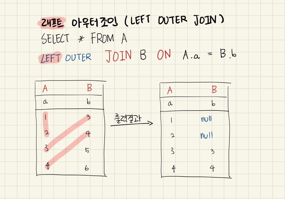 래프트 아우터 조인(LEFT OUTER JOIN)