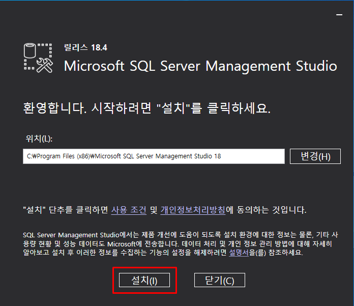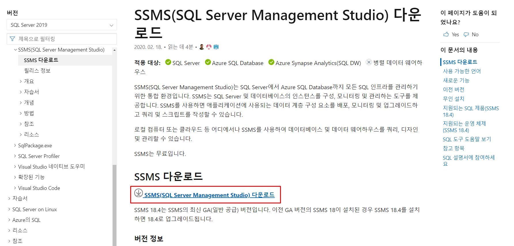 SSMS 하단에 SSMS(SQL Server Management Studio) 다운로드> 클릭