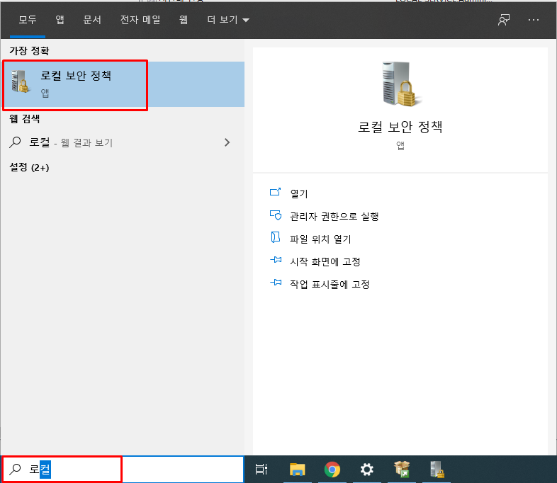 윈도우 탐색창에서 로컬 보안 정책 찾은 후 실행