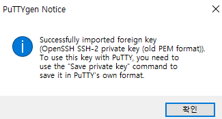PuTTY를 사용하여 개인키 저장및 우분투 실행