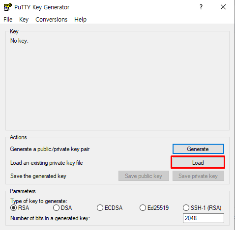 PuTTY 와 PuTTygen 두가지 프로그램을 사용할 것이다. 다운로드 받는 방법을 설명할 친절함은 내게 결핍되어 있으니 스스로 하도록 하고 PuTTYgen 을 실행하자.