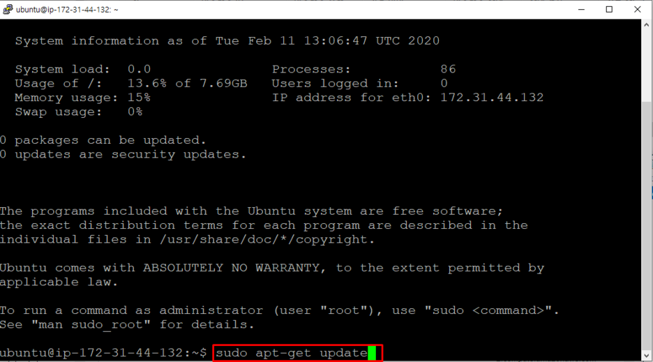 sudo apt-get update 를 타이핑후 엔터를 입력하자. 업데이트 되는 정보들이 빠르게 올라오는데 이 때 눈살은 조금 찌푸리고 모니터에서 눈을 떼지 않도록 하자.