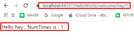 HelloWorld/Welcom/1?name=hey로 접근하였다면