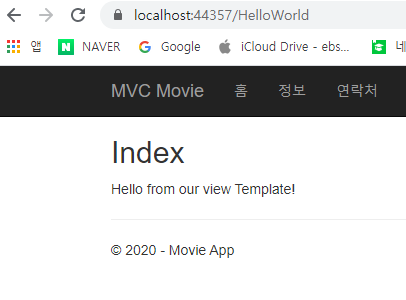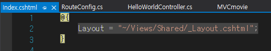 Index.cshtml ( Views.HelloWorld ) 페이지에 코드를 추가해보자.