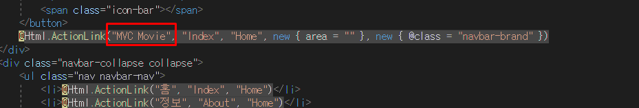 @Html.ActionLink("애플리케이션 이름", "Index", "Home", new { area = "" }, new { @class = "navbar-brand" })