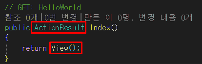 View 파일을 리턴하기 위해서 타입은 ActionReesult 로 입력해준다.
