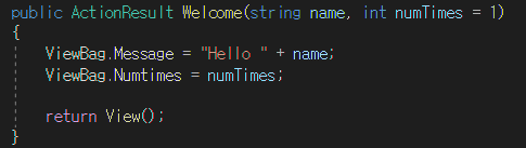 ViewBag.Numtimes = 명령은 numTimes 값을 View 로 보내게 된다.