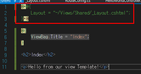 그렇기 때문에 생성하는 View 파일은 _Layout.cshtml을 참조하도록 명시하고 있는 코드를 생략이 가능하다.