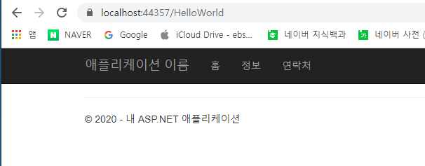 페이지 하단에 [ 내 ASP.NET 애플리케이션] 이라고 적혀있는것을 볼 수 있다.