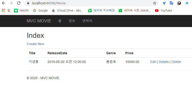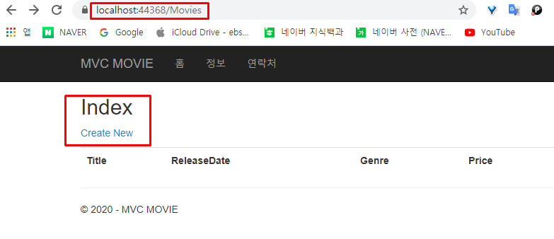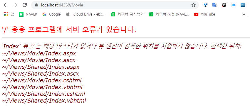 그렇다면 변경한 컨트롤러 이름인 Movie를 URL로 입력하여 보겠다.