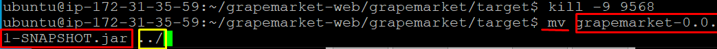java 가 실행되고 있는 중이라면 kill -9 [피드번호] 를 입력해서 실행중인 자바를 모두 종료하고 다시 패키지 명령을 실행하면 작업이 정상적으로 진행될것이다.