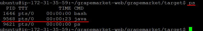 ps를 입력하면 현재 실행중인 프로세스들을 확인할 수 있는데 java가 여전히 실행중이니 종료해주도록 하자.