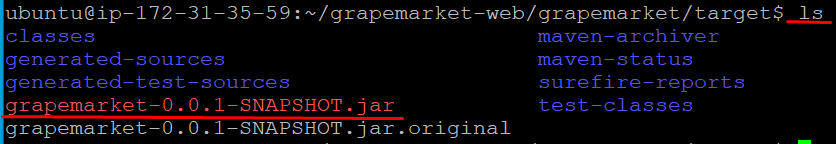 ls 를 입력하면 생성된 jar 파일을 확인 가능하다.