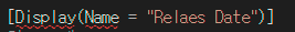이번 시간에는 MoviesController에 대해 생성된 편집과 관련된 메서드 및 뷰에 대해서 공부할 것이다. 본론에 들어가기에 앞서 날짜 정보를 정확하게 입력하기 위해 어노테이션을 사용해보자. Model.Movie.cs 에 [Display(Name = "Release Date")] [DataType(DataType.Date)] [DisplayFormat(DataFormatString = "{0:yyyy-MM-dd}", ApplyFormatInEditMode = true)] 위와 같은 Diversion을 입력할 것인데 위 데이터를 입력하기 위해서는 using System.ComponentModel.DataAnnotations; 위 내용을 먼저 추가해주어야 한다. 그렇지 않으면 아래의 사진처럼 인식을 할..